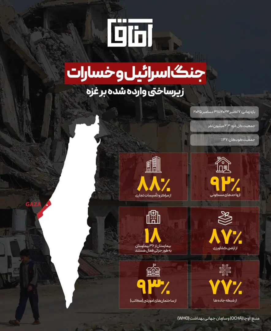 جنگ اسرائیل و خسارات زیرساختی وارد شده بر غزه
