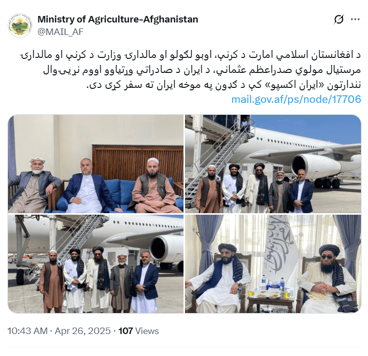 د کرنې وزارت مرستیال صدراعظم عثماني او مل پلاوی یې “ایران اکسپو” څلور ورځني نندارتون کې د ګډون په موخه، د یاد هېواد پر لور روان شول