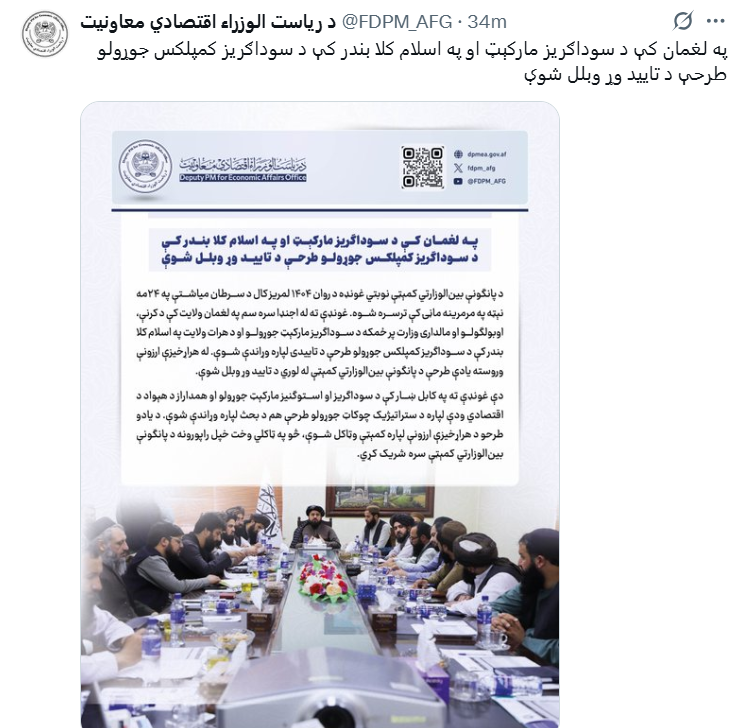 لغمان کې د سوداګریز مارکېټ او اسلام کلا بندر کې د سوداګریز کمپلکس جوړولو طرحې تاییدې شوې