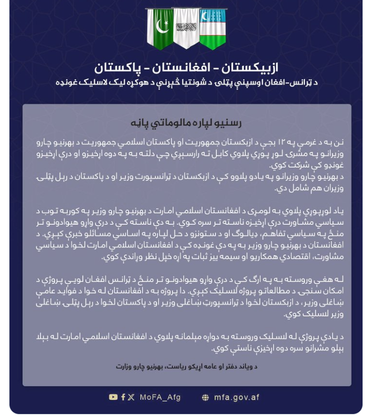 نن کابل کې د افغانستان، پاکستان او ازبکستان درېاړخیزه ناسته جوړېږي