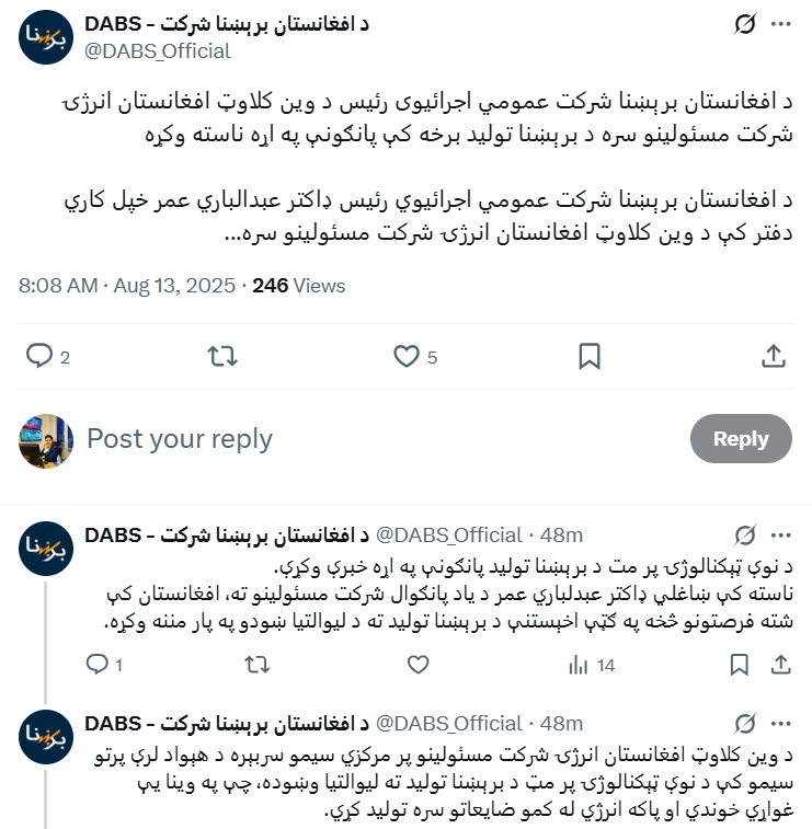 یو خصوصي شرکت له نوې ټکنالوژۍ په استفادې برېښنا تولید برخه کې پانګونه کوي