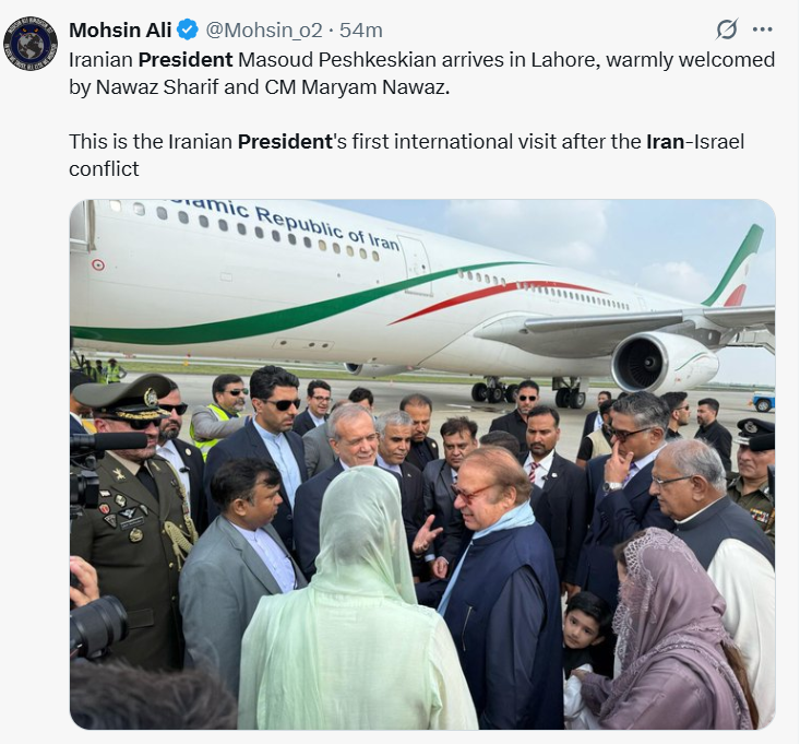 د ایران ولسمشر لاهور ته رسېدلی او د نواز شریف له لوري یې هرکلی شوی