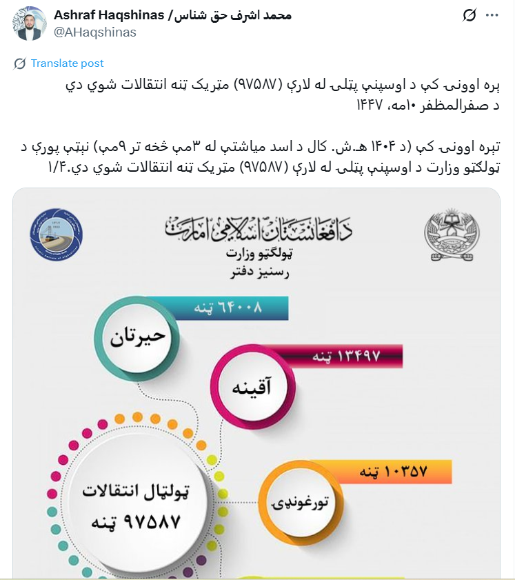 تېره اونۍ د اوسپنېپټلۍ له لارې څه باندې ۹۷ زره مټریک ټنه انتقالات شوي