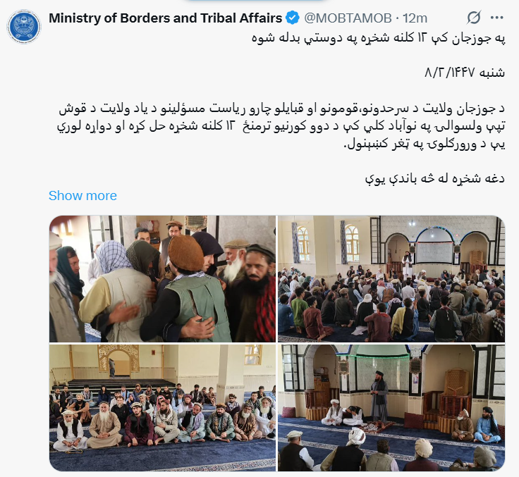 جوزجان کې د دوو کورنیو ترمنځ ۱۲ کلنه شخړه حل شوه