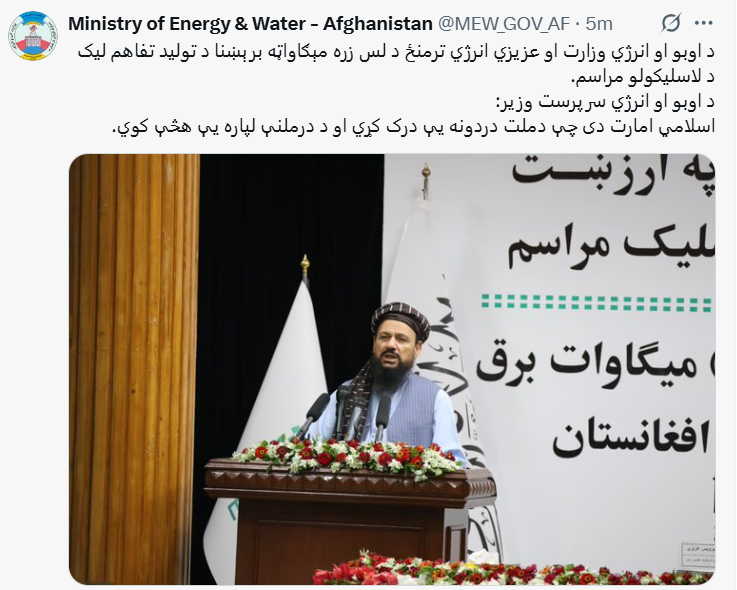نن کابل کې د اوبو او انرژۍ وزارت او عزیزي ګروپ ترمنځ د لس زره مېګاواټه برېښنا تولید تړون لاسلیک کېږي
