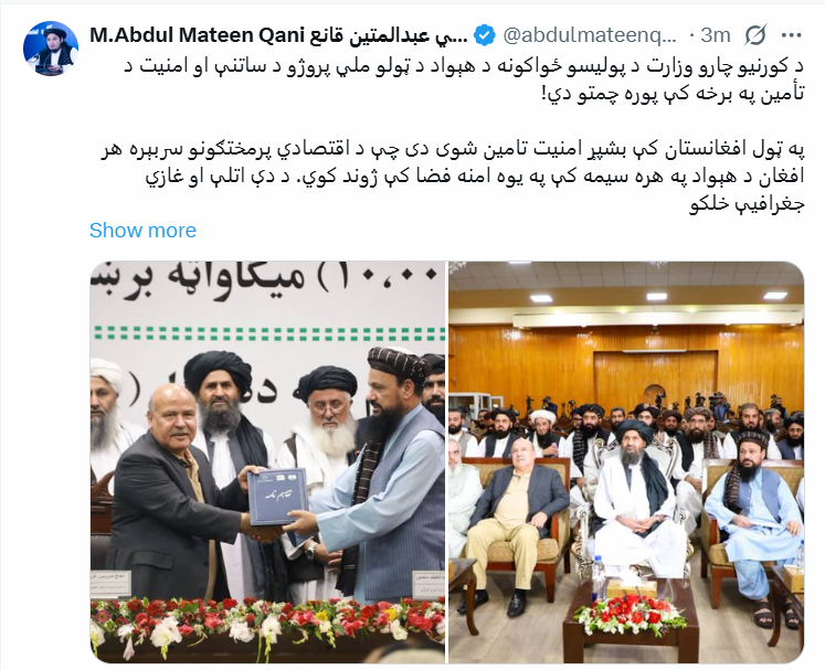 کورنیو چارو وزارت د ملي پروژو امنیت ټینګښت ډاډ ورکړی