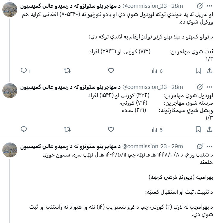 پرون له ایران او پاکستان څه باندې ۷۰۰ کورنۍ راستنې شوې
