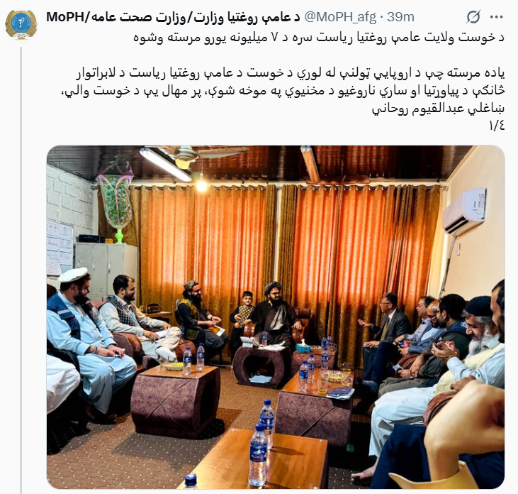 اروپایي ټولنې د خوست عامې روغتیا ریاست سره ۷ میلیونه یورو مرسته وکړه