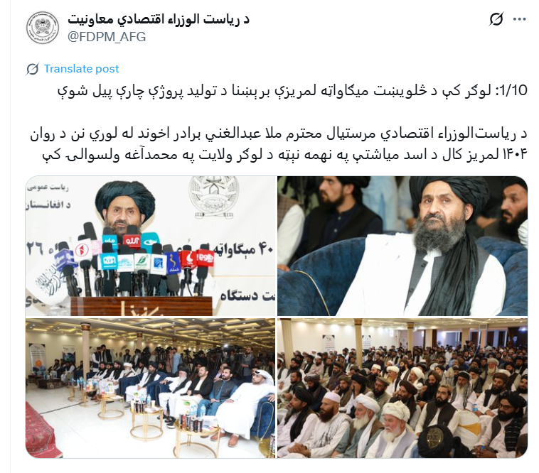 لوګر کې د څلویښت میګاواټه لمریزې برېښنا تولید پروژې چارې پيل شوې