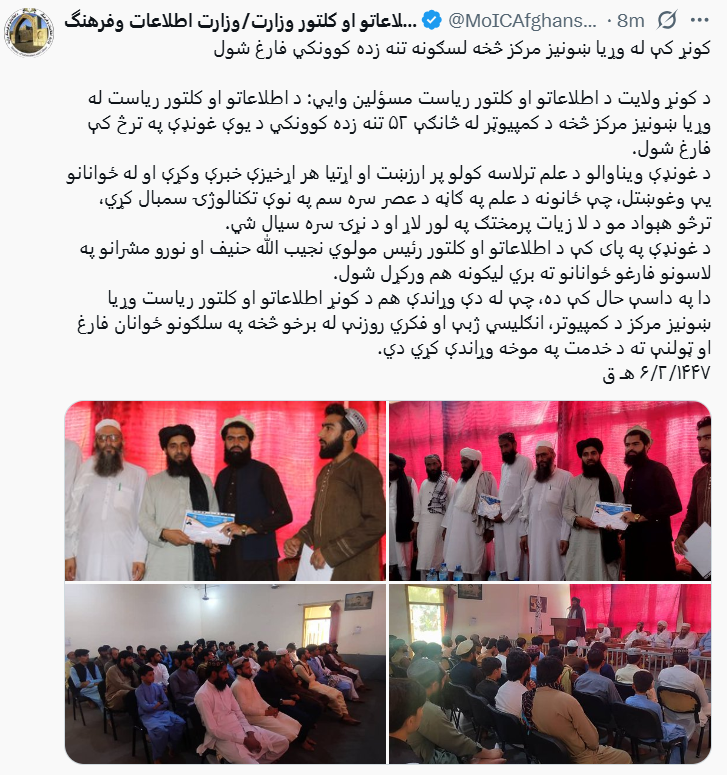کونړ کې ۵۲ تنه له فني او حرفوي زدهکړو فارغ شوي