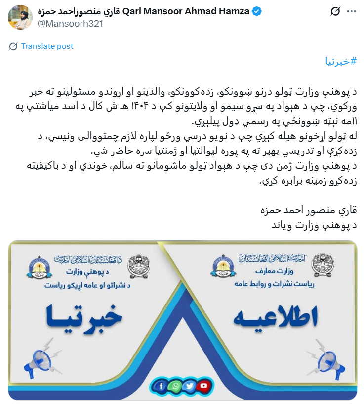 نن په ټولو سړو سیمو کې ښوونځي بېرته پیل شول