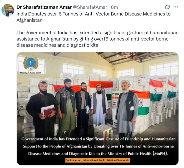 هند افغانستان سره د ساري ناروغیو ضد ۱۶ ټنه درملو مرسته وکړه