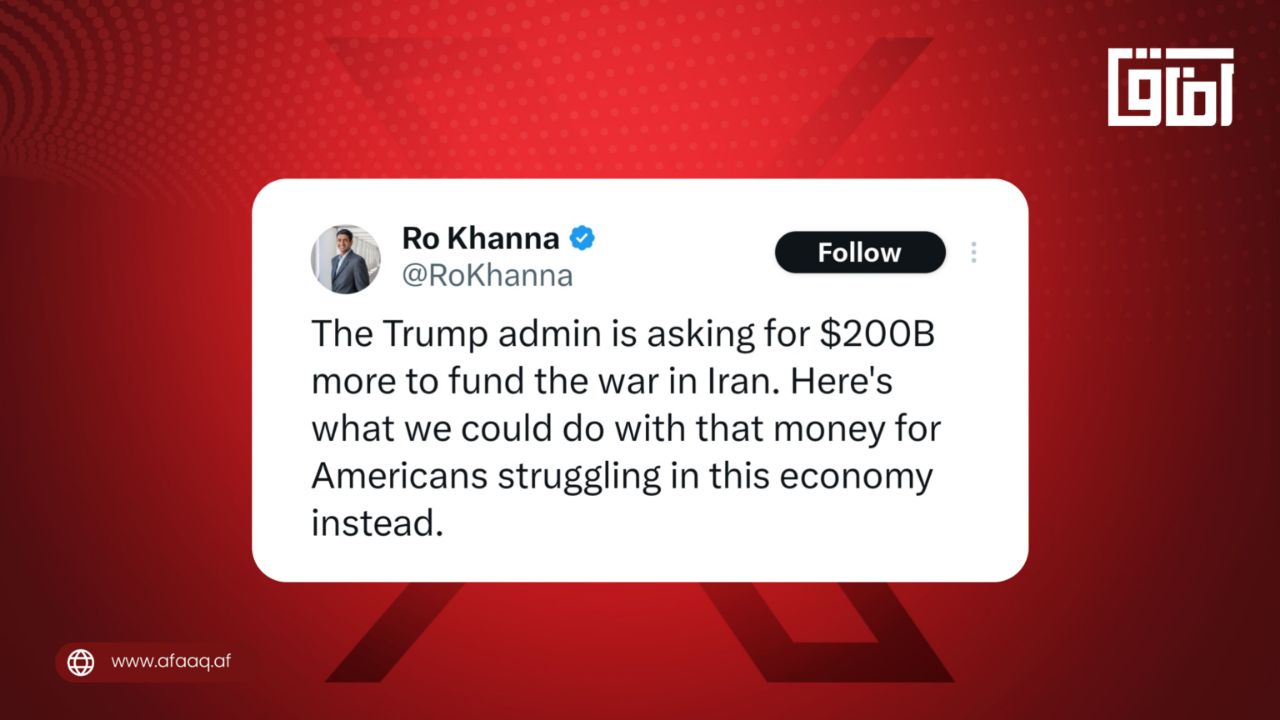 د کالیفورنیا ډیموکرات استازي رو خانا ویلي: «د ټرمپ اداره ایران سره د جګړې تمویل لپاره د ۲۰۰ میلیارده ډالرو اضافي بودجې غوښتنه کوي. دلته دې ته اشاره کېږي چې...