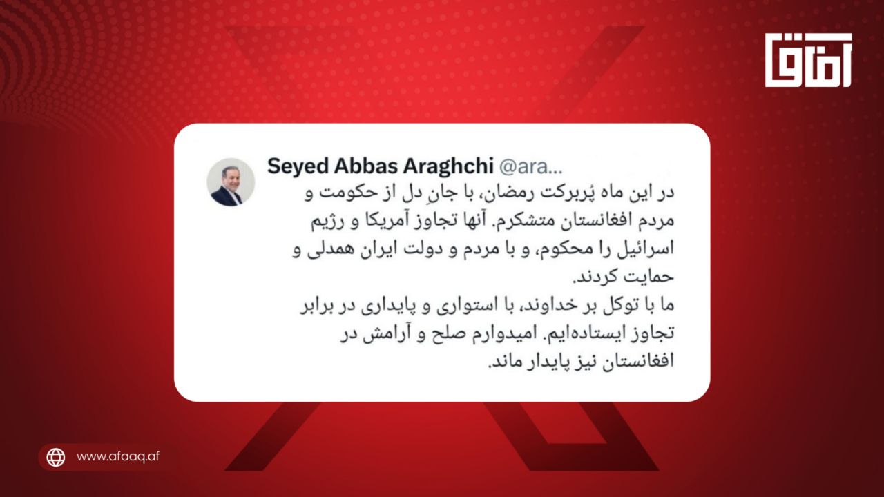 د ایران بهرنیو چارو ویر سید عباس عراقچي، ویلي چې د ایران پر وړاندې د امریکا او اسراییلو په بریدونو کې د افغانانو له دریځ د زړه له کومې مننه...