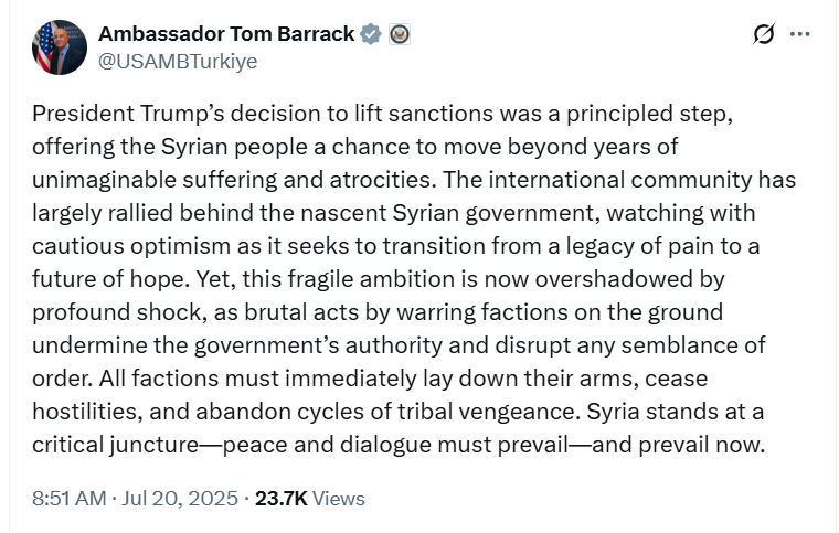 ټام باراک: سوریه کې به روانې ناندرۍ ژر پایته ورسېږي