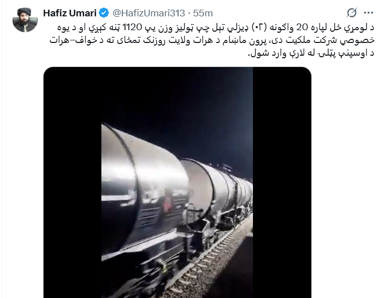 د لومړي ځل لپاره د وسپنې پټلۍ له لارې له ایران څه باندې زر ټنه ډیزل وارد شول