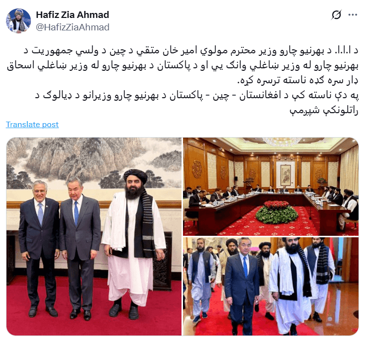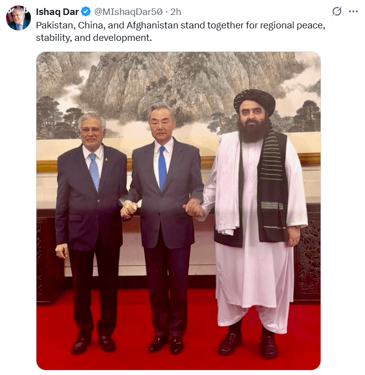 امیر خان متقي بېجېنګ کې له اسحاقډار او وانګیي سره پر سیاسي او اقتصادي اړیکو غږېدلی