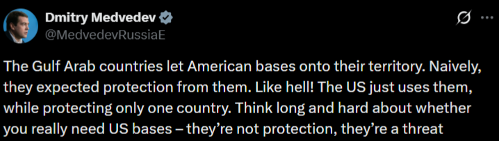 کشورهای عربی حوزه خلیج، پایگاههای آمریکا را در خاک خود پذیرفتند. آنها سادهلوحانه انتظار داشتند که این پایگاهها برایشان امنیت و حفاظت بیاورند. اما هرگز چنین نیست؛ آمریکا فقط از آنها استفاده میکند، در حالی که تنها از یک کشور محافظت میکند. باید با دقت و جدیت فکر کرد که آیا واقعاً به پایگاههای آمریکا نیاز دارید یا نه؛ چون این پایگاهها نه مایه حفاظت، بلکه خودِ تهدید هستند.