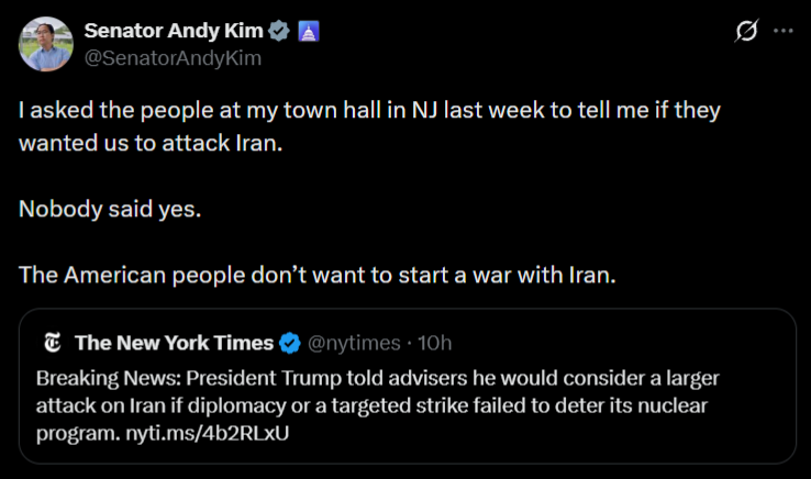 روایت سناتور آمریکایی از سوالی که از مردم آمریکا درباره جنگ با ایران پرسید / اندی کیم: