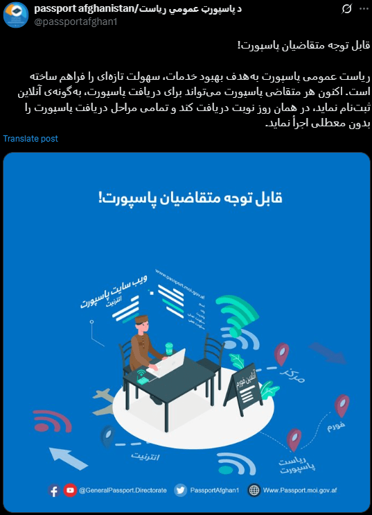 ریاست عمومی پاسپورت: متقاضیان پس از این میتوانند در یک روز پاسپورت دریافت کنند 11 ثور 1404 شبکه های اجتماعی Post Views: 157 مطالب بیشتر: ارتباط نوآم چامسکی با جفری اپستین فیلسوف، زبانشناس و استاد سرشناس «مؤسسه فناوری ماساچوست / اِمآیتی» لینک کوتاه: https://afaaq.af/?p=4597 منتشر شده در 9:54 ق.ظ دیدگاهتان را بنویسید لغو پاسخنشانی ایمیل شما منتشر نخواهد شد. بخشهای موردنیاز علامتگذاری شدهاند *دیدگاه * نام ایمیل وب سایت Δ