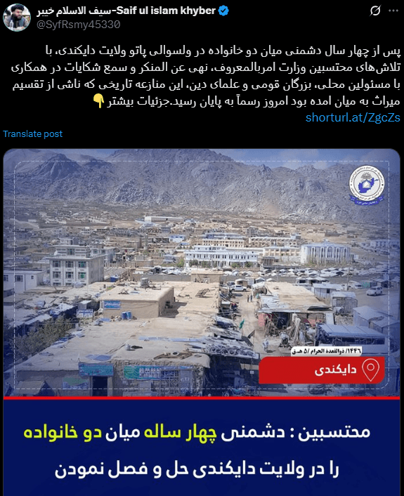 وزارت امر به معروف و نهی از منکر: دشمنی چهارساله میان دو خانواده در دایکندی «حل و فصل» شد 13 ثور 1404 شبکه های اجتماعی Post Views: 132 مطالب بیشتر: سرپرست وزارت اقتصاد با مسوولان شماری از نهادهای بینالمللی دیدار کرد لینک کوتاه: https://afaaq.af/?p=4725 منتشر شده در 3:43 ب.ظ دیدگاهتان را بنویسید لغو پاسخنشانی ایمیل شما منتشر نخواهد شد. بخشهای موردنیاز علامتگذاری شدهاند *دیدگاه * نام ایمیل وب سایت Δ